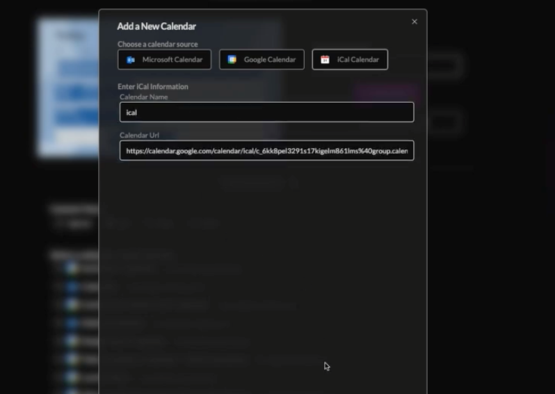 6. Enter a calendar name and paste in the iCal URL