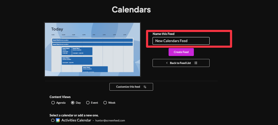 4. Set a custom name for the feed on the right, then scroll to continue customizing the feed