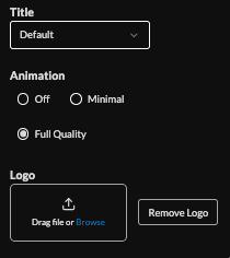 14. Toggle the title (default, short date, or custom), optionally upload a logo, and adjust animation quality (HTML only).