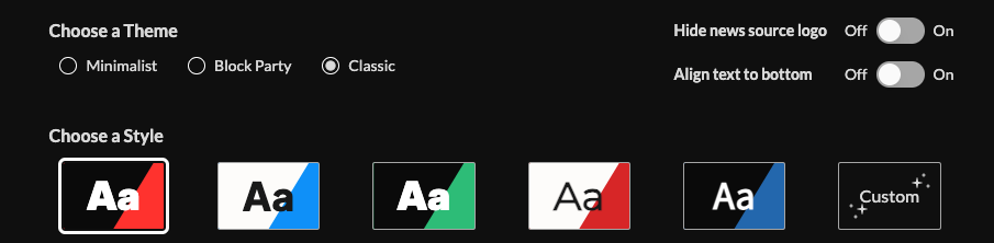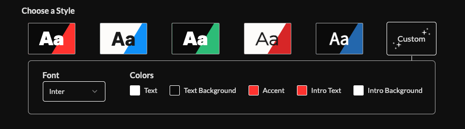 6. Choose a style using preset buttons or the "Custom Style" tile to adjust fonts, colors, intro, summary, and background.