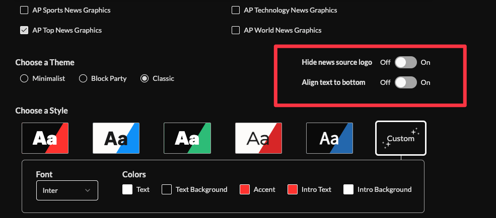 7. Optionally hide the news source logo or header.