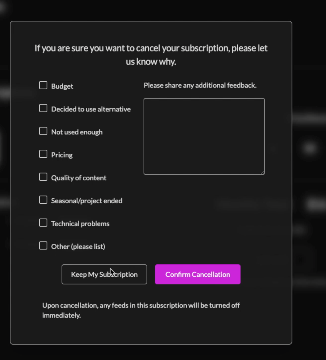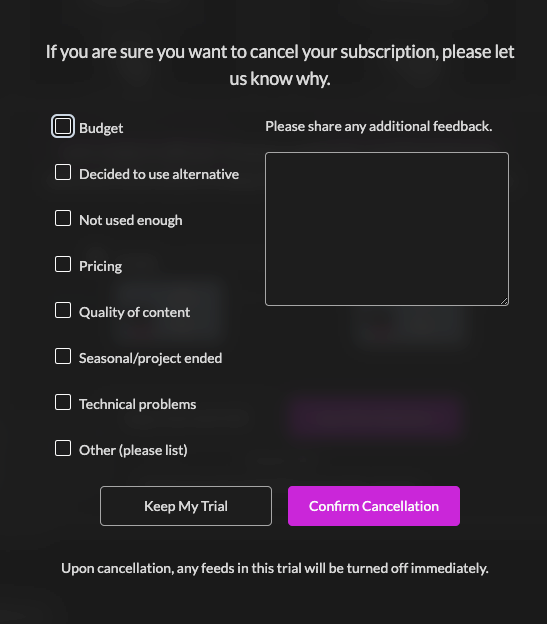 Learn how to cancel your Screenfeed digital signage content subscription at any time, and how to easily re-activate if you change your mind.