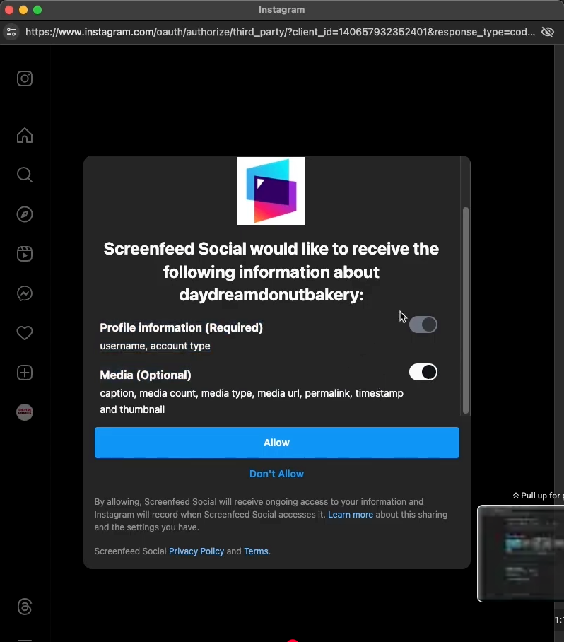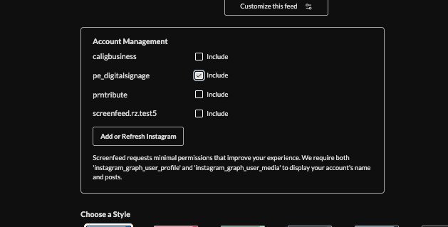 Instagram for digital signage requires Authentication from a user with administrator access to an Instagram account.