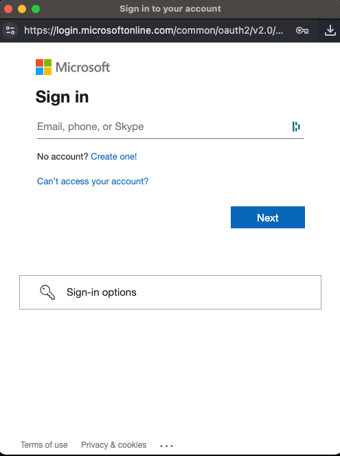 5. Enter your Teams credentials ( This uses Microsoft authorization including any 2 factor authentication enabled), and authorize the application. You must be a Microsoft account administrator to approve.